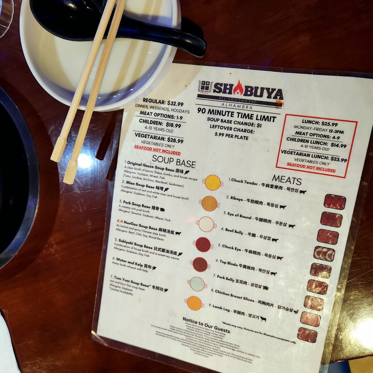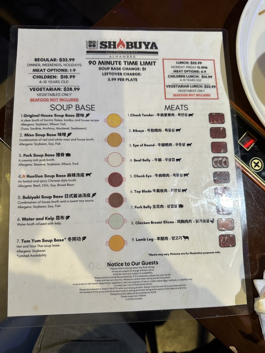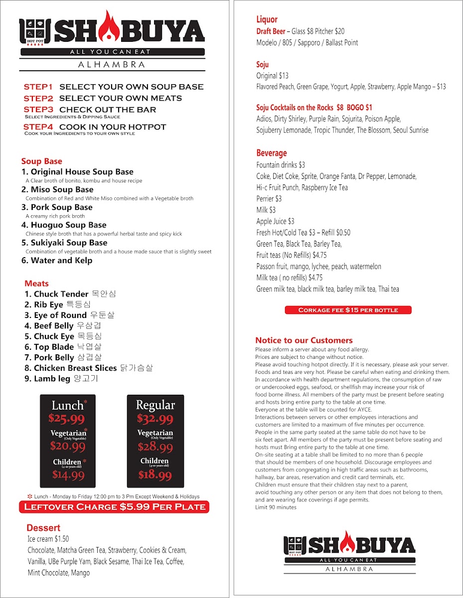 Welcome to Shabuya, a delightful shabu-shabu restaurant nestled in Alhambra, CA, where culinary dreams come alive. This haven boasts a rich menu centered around all-you-can-eat (AYCE) shabu-shabu offerings at an accessible price. The signature selections include U.S. Wagyu Chuck Tender and certified Angus Top Blade, renowned for their tenderness and flavor. Customers rave about the impressive variety of meats, which are expertly sliced to enhance your dining experience.