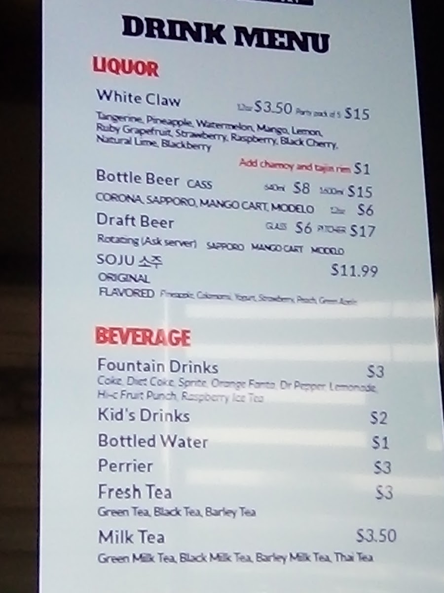 Drink Menu - Liquor - Soju